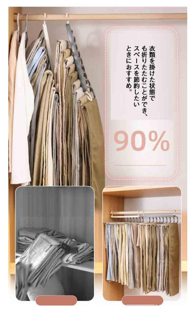 | 収納スペースをより有効活用できる、縦・横2way仕様の連結式スラックスハンガー。 衣類を掛けた状態でも折りたたむことができ、スペースを節約したいときにおすすめ。 丈夫なステンレスフックなので高耐荷重と耐久性に優れています。 滑り止め付のバーで服の落下を防止。 1つのハンガーでスラックス5着収納可能。 | |