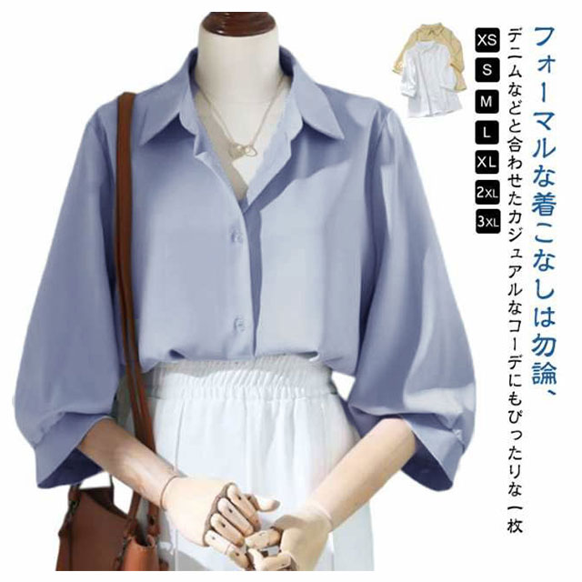 定番 シャツ レディース ブラウス 7分袖 レディースブラウス 七分袖 ワイシャツ ワイシャツ オフィス カジュアル 事務服 おしゃれ 大きいサイズ フェミニン フォーマル きれいめ 白 ホワイト イエロー ベージュ ブルー 送料無料