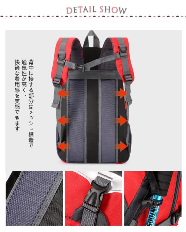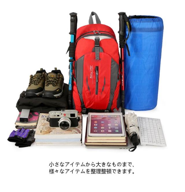 | 【登山リュック】【軽量・撥水】【40Lの大容量】 日帰り登山から一泊程度のキャンプにも対応できるリュックです。 高品質なオックスフォード素材を使用し、防水性も兼ね備えており、小雨などによる浸透を防ぎます。 小さなアイテムから大きなものまで、様々なアイテムを整理整頓できます。 背中に接する部分はメッシュ構造で通気性が高く、快適な着用感を実感できます 幅広ショルダーストラップは、肩や背中にかかる荷重を均等に分散してくれます。 登山、ハイキング、キャンプ、トレッキング、野外フェス、旅行、タウンユースでも大活躍。 | |