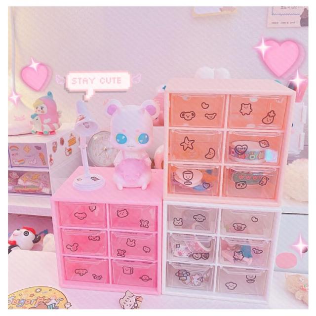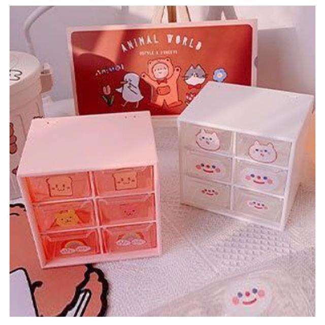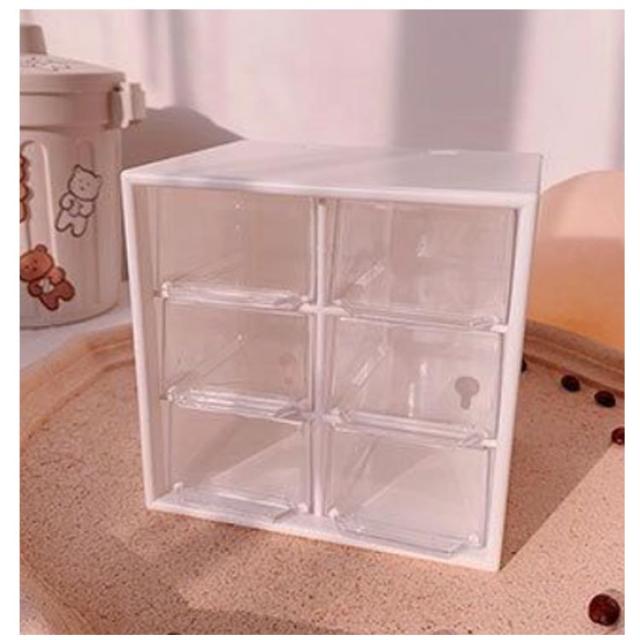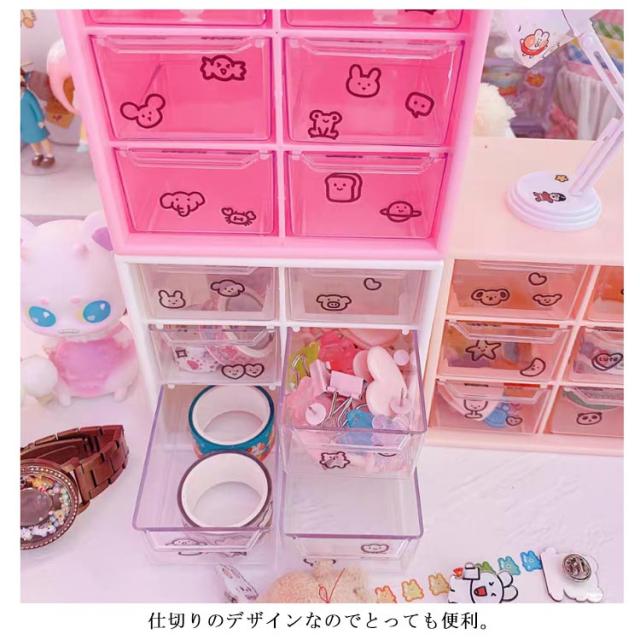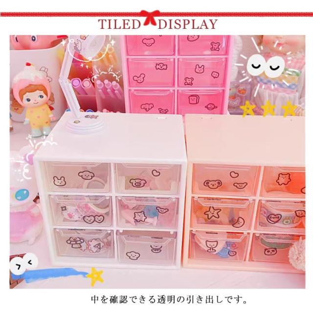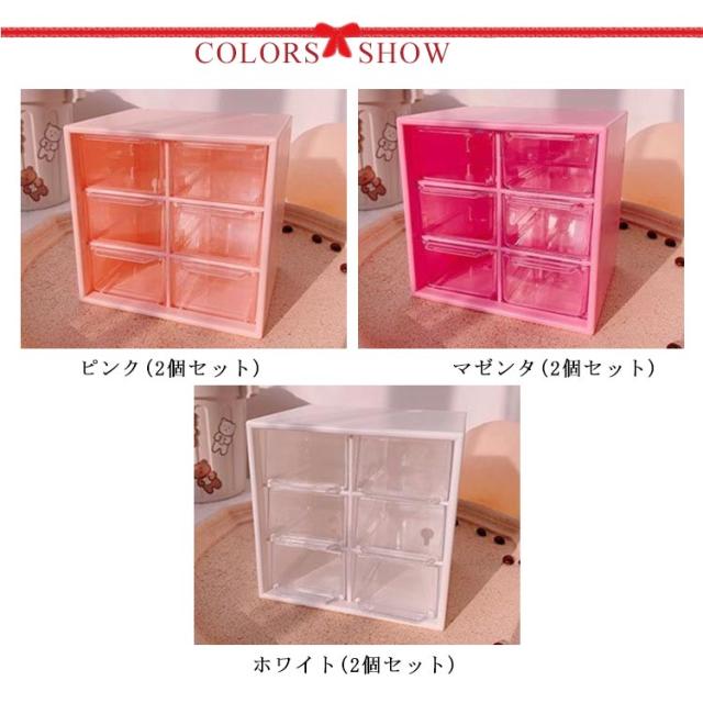 6仕切り 収納ボックス 引き出し 卓上収納ボックス 12×12cm 収納 ボックス プラスチック 3段 デスク収納 机上用 小物収納 クリア 見える 化粧品収納 卓上 整理 ピンク マゼンタ ホワイト