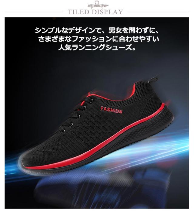 | 22.5cm〜30.0cm 軽く、心地よいクッション性と抜群通気性 シンプルなデザインで、男女を問わずに、さまざまなファッションに合わせやすい人気ランニングシューズ。 スポーツシーンだけでなく、通勤や通学、普段履きとしてもカジュアルなコーディネートをお楽しみい ただけます。 通気性も良く、蒸れにくい、着用時の季節を選びません! 見た目のおしゃれさだけではなく、柔らかクッションで、足首にかかる負担をけいげん! ソールがデコボコだから、滑るのを防いでくれます、日常使いや雨の日でもあんしん! 足添いの良いシームレスなメッシュアッパー 軽量でありながら優れたクッション性を発揮する。 | |