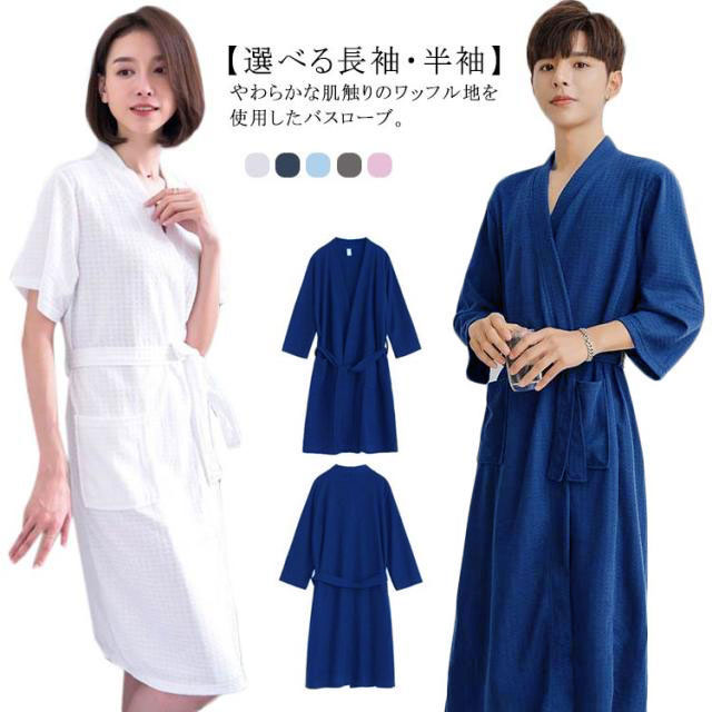 バスローブ レディース メンズ 長袖 半袖 薄手 ワッフル ロングタイプ バスローブ お風呂上り ガウン おしゃれ 部屋着 ルームウェア 速乾 軽量 オールシーズン 温泉 ホテル プール 海 ギフト 誕生日 プレゼント