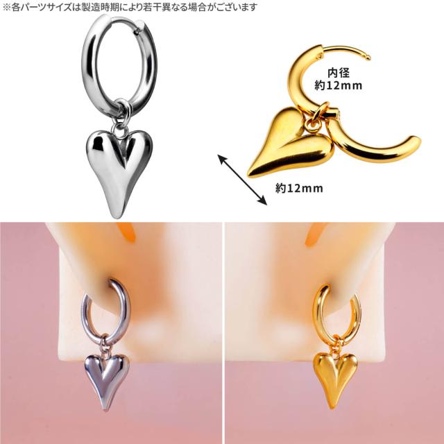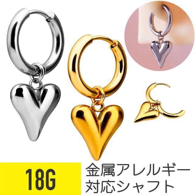 ハート チャーム ワンタッチ リング フープ ピアス 18G サージカルステンレス ヘリックス コンク 軟骨ピアス ボディピアス キャッチレス