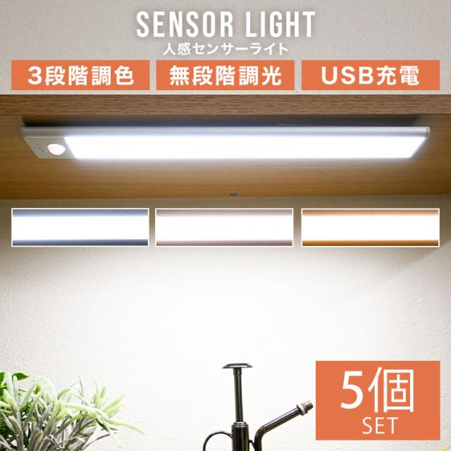 【5個セット】センサーライト 室内 人感センサーライト 自動点灯 3段階調色 無段階調光 玄関 ライト LED LEDライト おしゃれ フットライト 照明 白色 電球色 自動消灯 防犯 充電式 停電 足元灯 非常灯 玄関 廊下 キッチン クローゼット 洗面所 防災 送料無料