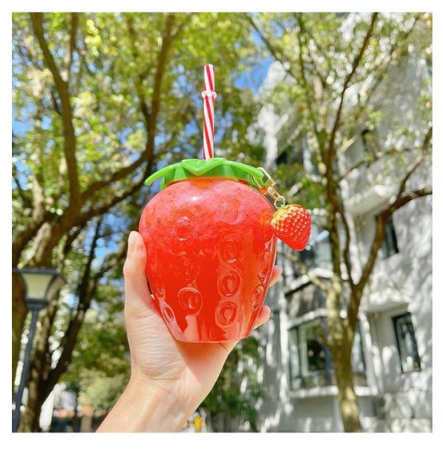 | 【5個セット】【ストロー/チャーム付き】【500ml】 おしゃれで可愛いイチゴ型のウォーターボトル! 丁度いいサイズ感で使い勝手バツグン♪ 話題のSNSで映える事間違いなし。 ご注意:熱い飲み物には使えません。 | |