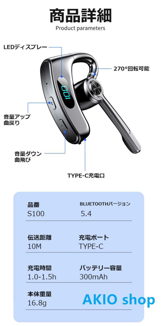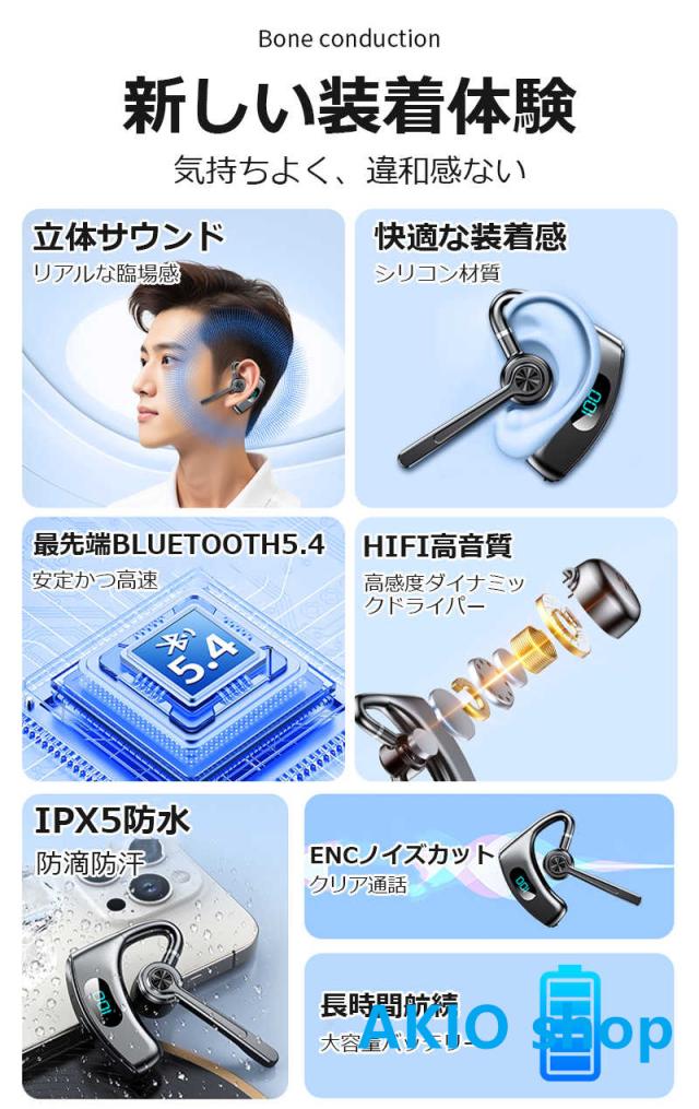 骨伝導イヤホン Bluetooth5.4 ヘッドホン HiFi高音質 耳かけ式 長時間航続 Type-C充電 IPX5防水 防滴防汗 大容量バッテリー LED残電表示 270度回転可能