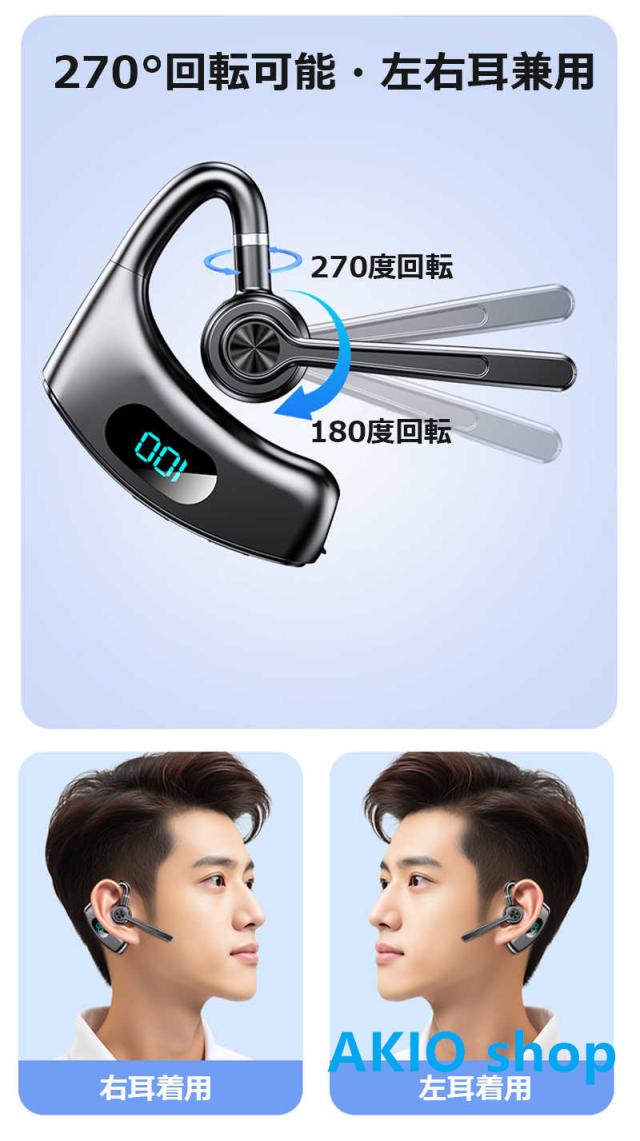 ●左右耳兼用・マイクブームは上下180°に回転可・フック部分は270°回転可