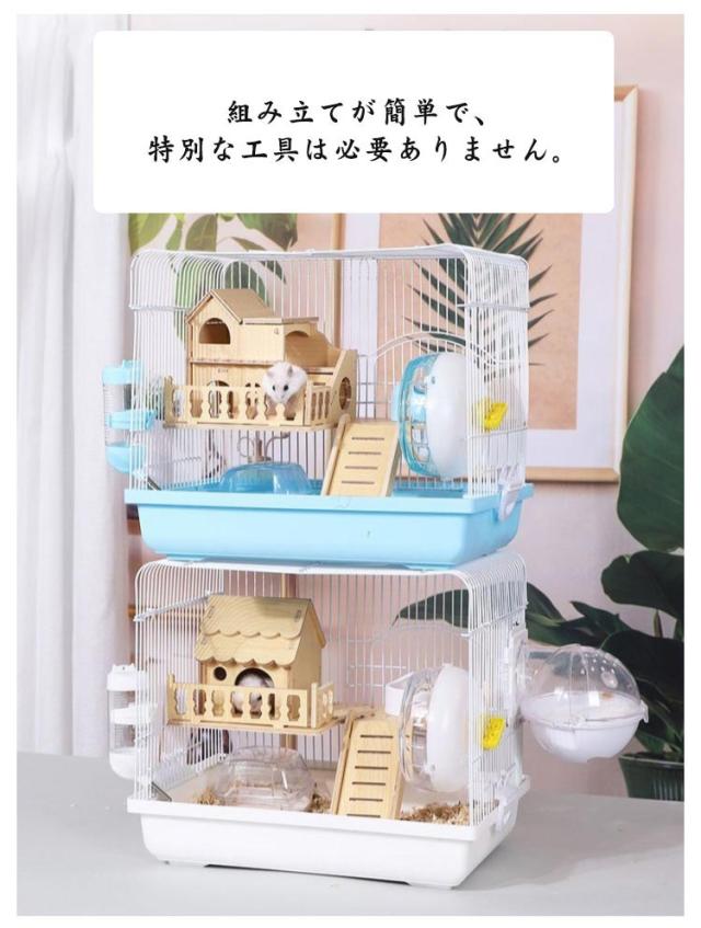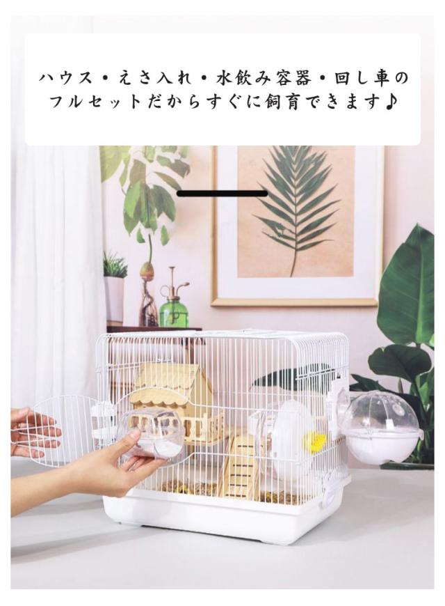 ハムスターケージ 2階デザイン ハムスターハウス 9点セット ハムスター ケージ通気性抜群 組立簡単 飼育ケージ かわいい 小動物用ケージ 洗える 給水ボトル まわし車 シーソー 食器 回し車 掃除簡単 木製ハウス
