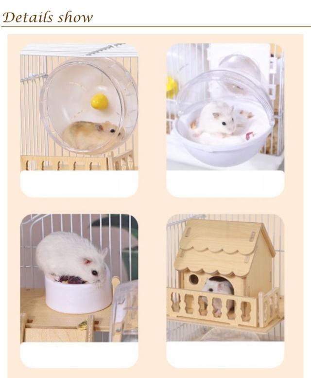 | サイズについての説明 | セット内容:本体ケージ、12cm回し車、エサ皿、給水ボトル、木のハウス、はしご、デッキ、バスルーム、シーソー サイズ:36*25*30cm ※測定方法によって誤差が生じますので、予めご了承下さい。 |