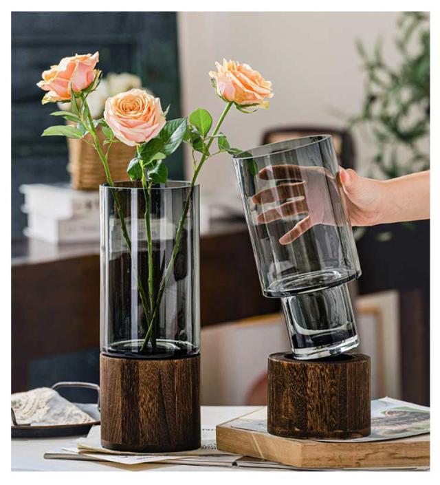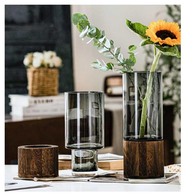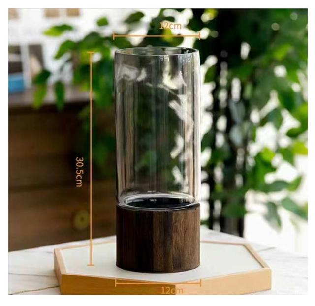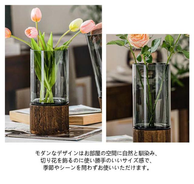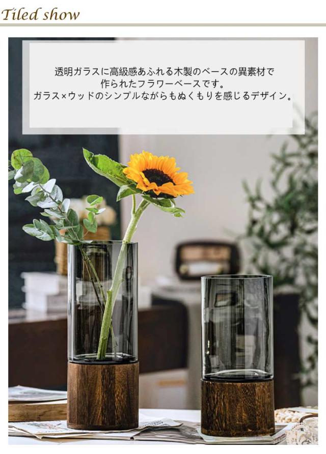 木の部分が外せる 花瓶 ガラス 木製 フラワーベース 手づくり花瓶 北欧 インテリア雑貨 おしゃれ 花器 透明 クリア 大きい 枝物 花びん シンプル 可愛い レトロ 円柱 円形 生花 生け花 ドライフラワー 一輪挿し インテリア リビング 玄関 母の日 ギフト プレゼント