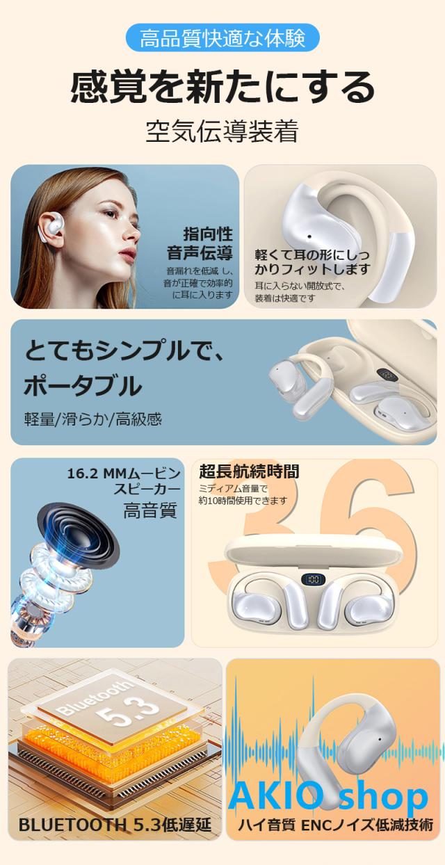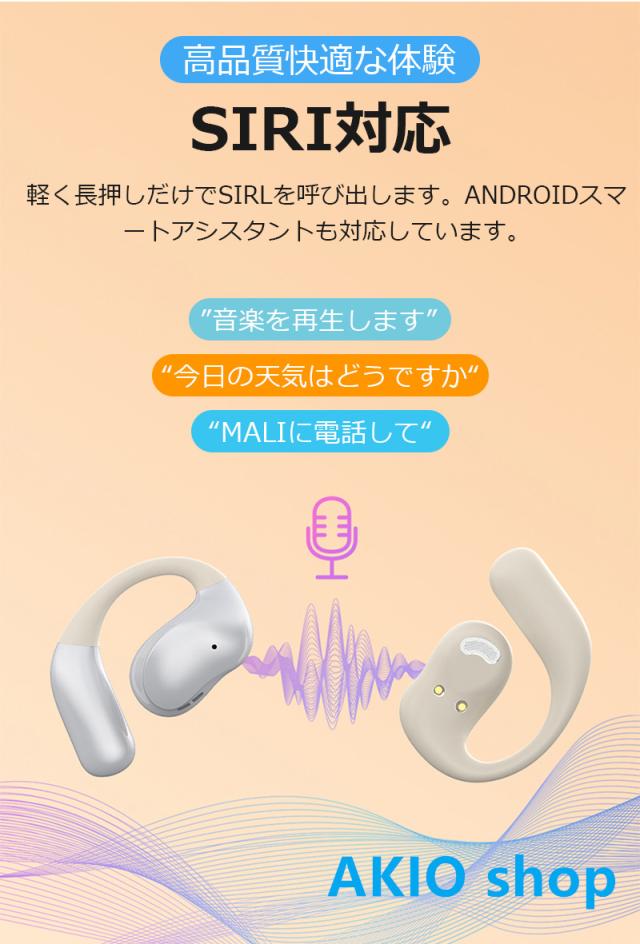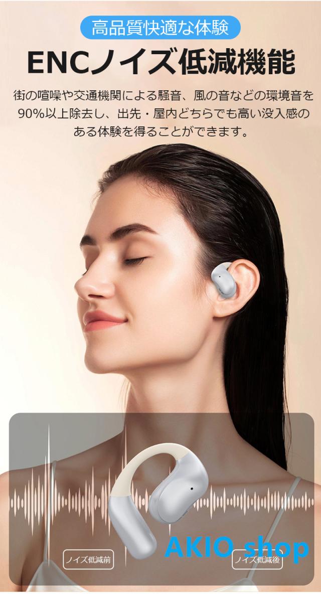 ワイヤレスイヤホン Bluetooth5.3 空気伝導 両耳/片耳 耳掛け OWS式 Siri対応 周囲の音が聞こえる 落ちにくい HiFi 高音質 マイク内蔵 ENCノイズキャンセリング