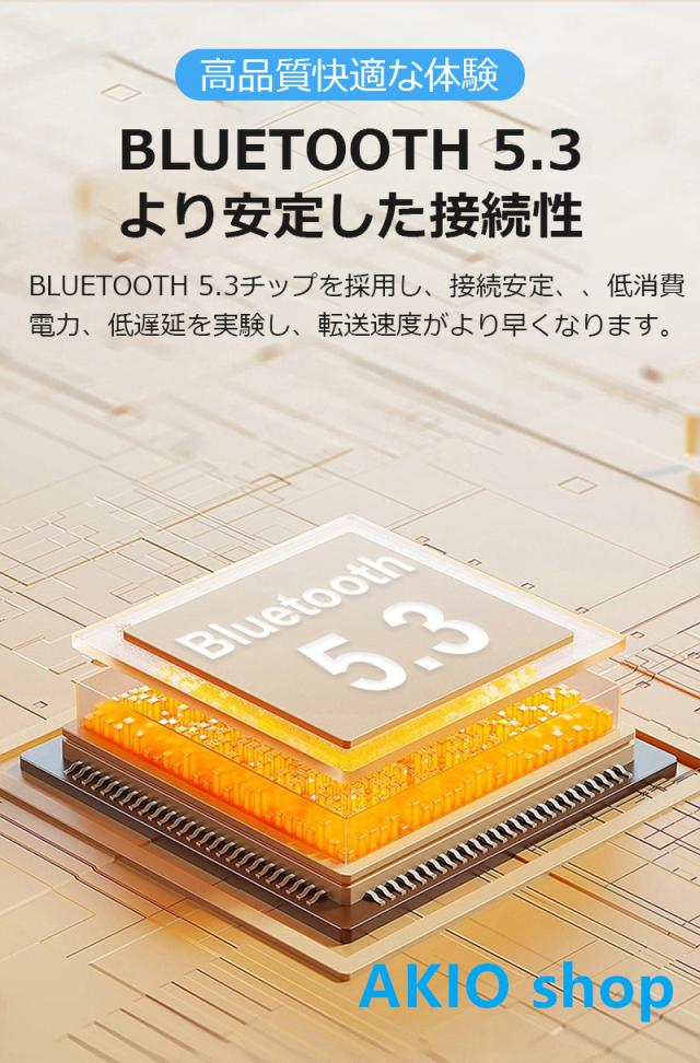 【Bluetooth5.3】より高速な伝送速度と安定した通信が実現され、干渉防止能力も向上させ、音楽鑑賞はもちろん、ゲームや動画もスムーズで思う存分楽しめます。