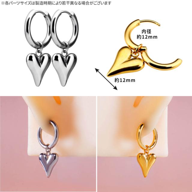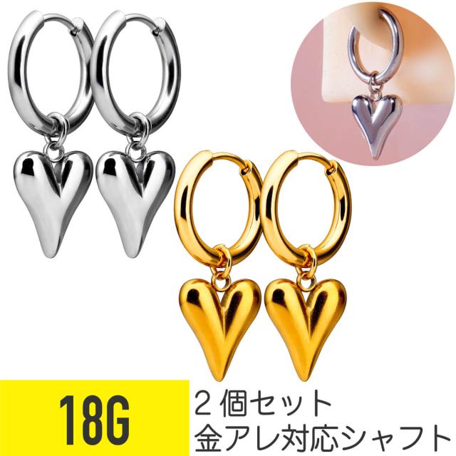 2個セット ハート チャーム ワンタッチ リング フープ ピアス 18G サージカルステンレス ヘリックス コンク 軟骨ピアス ボディピアス