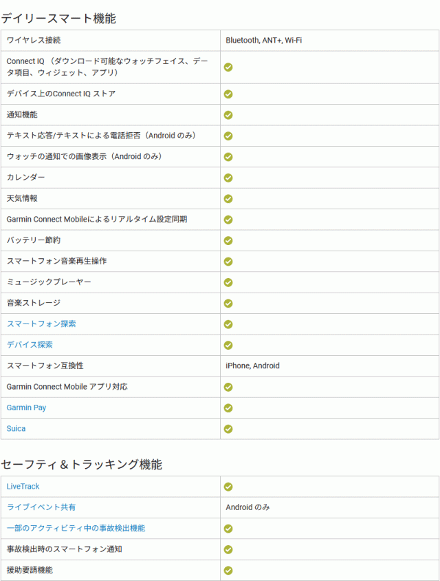 ■稼働時間:スマートウォッチモード約11日間、バッテリー節約スマートウォッチモード約20日間 GPSモード約19時間、マルチGNSSモード約17時間、GPS+音楽再生モード約7時間、マルチGNSS+音楽再生モード約6.5時間