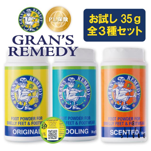 お試し3種セット グランズレメディ ボトルタイプ 35g×3 QRコード付 レギュラー無香料/クール/フローラル 消臭粉 並行輸入品 臭い悪臭 部活 運動 汗 春夏秋冬 イーライフストア ブーツ 長靴 スリッパ