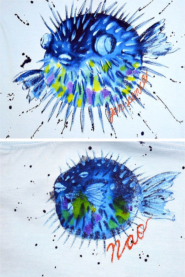 背中にはワンポイントで小さめなハリセンボンをデザイン。