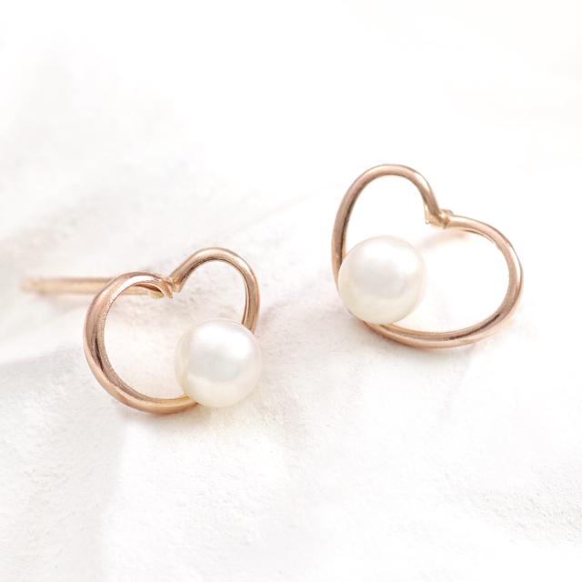 ハートピアス 淡水パール 10金 ピンクゴールド K10 10K レディース 淡水真珠 ジュエリー ハートモチーフ 可愛い 上品 プレゼント ギフト 誕生日 スタッド 小振り 小さめ ハート形 パールピアス 小ぶり 小さい 6月 誕生石 女性 彼女 嫁 娘 K10PG 本物 母の日 ギフト 2026