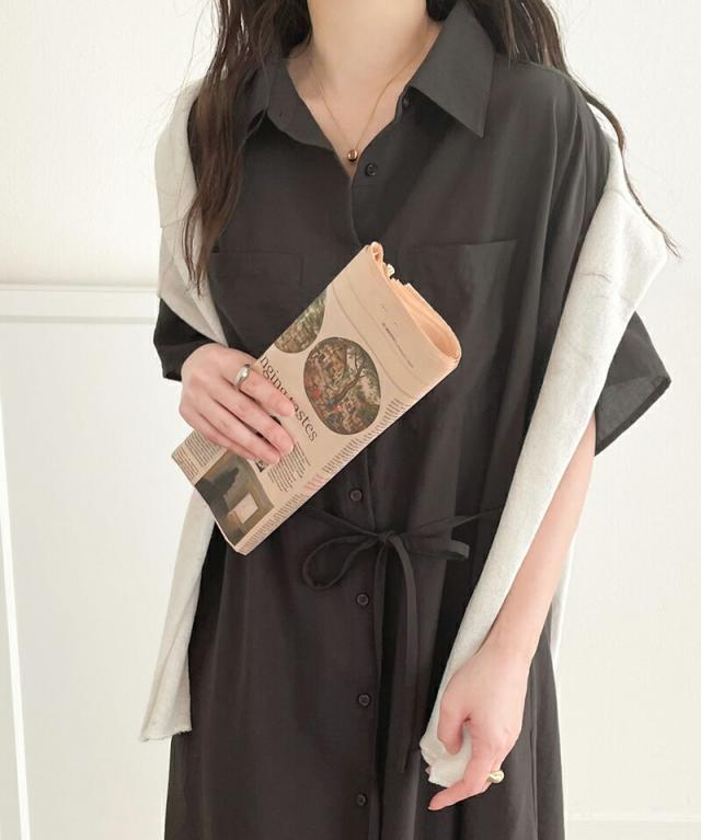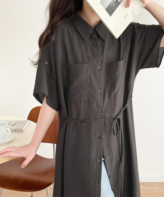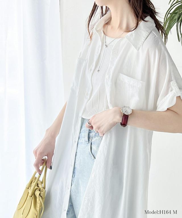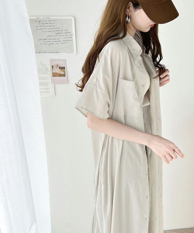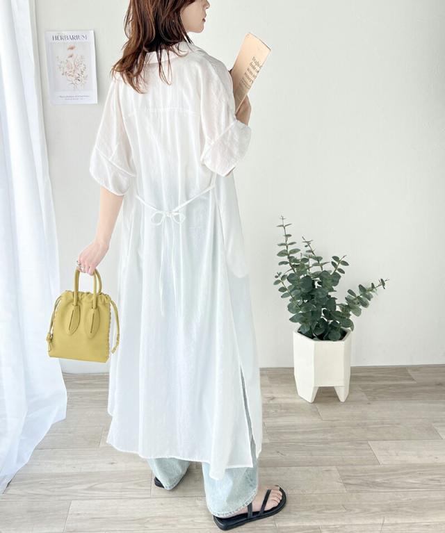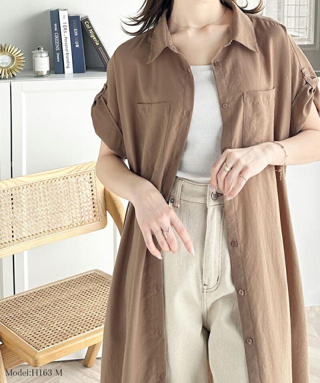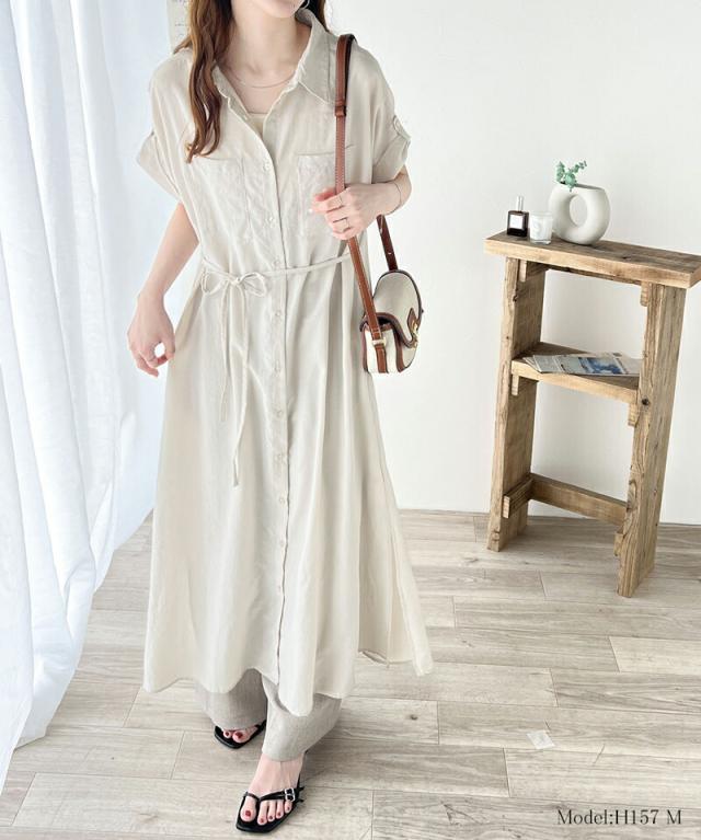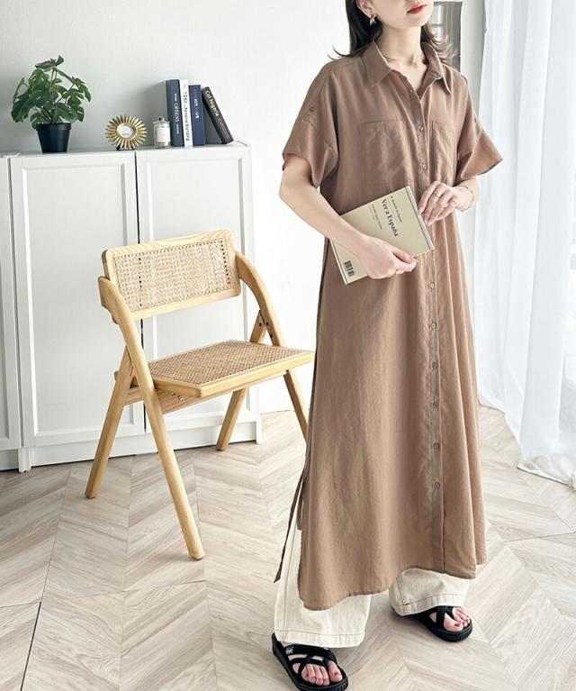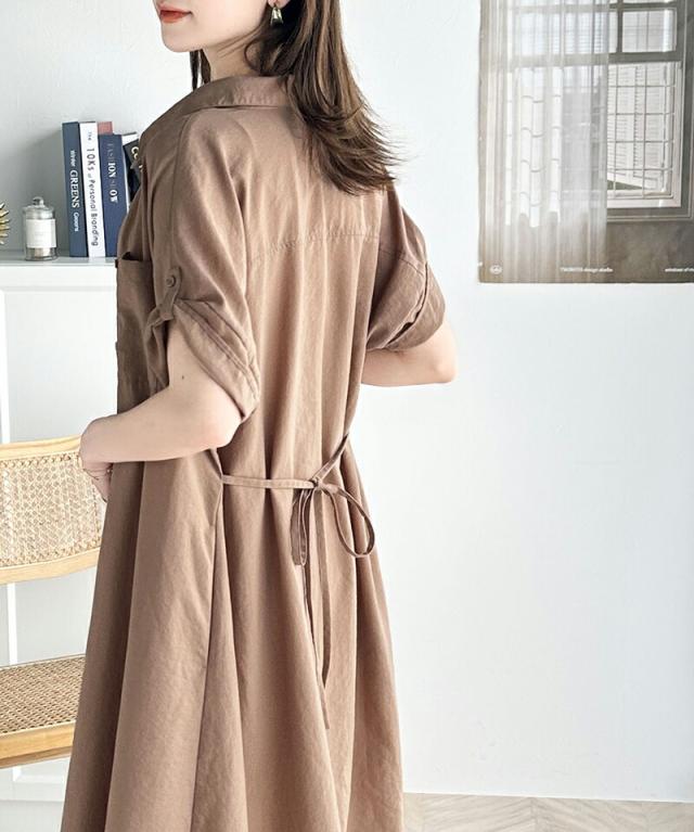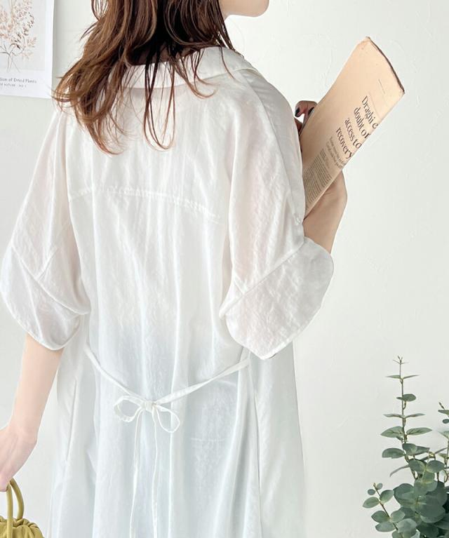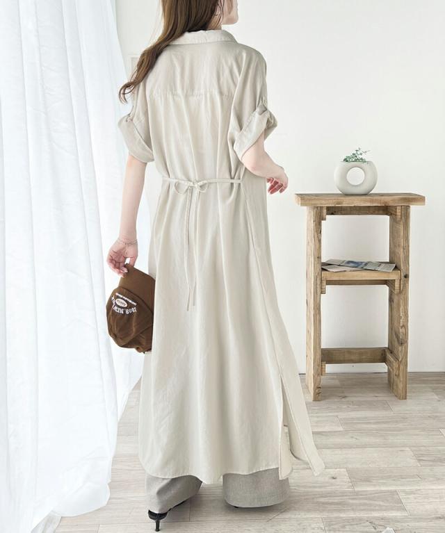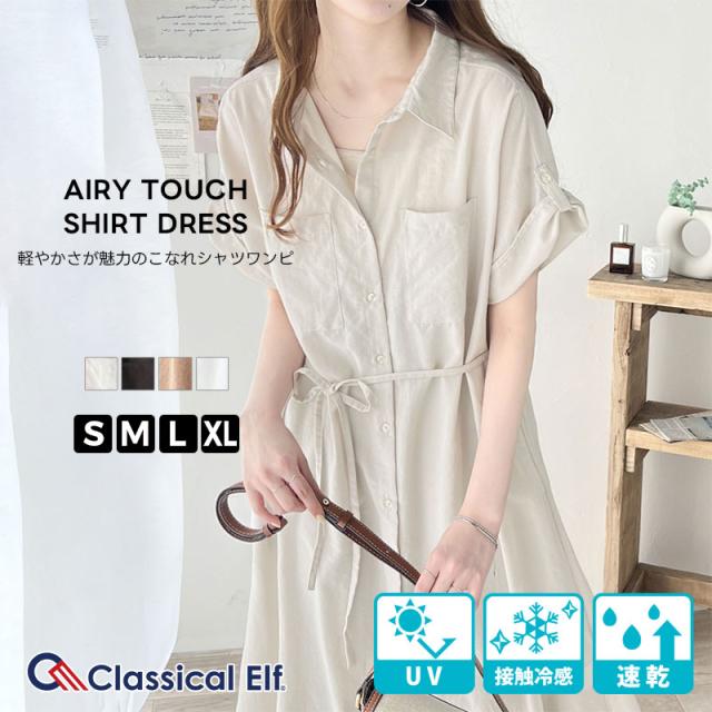 クラシカルエルフ 冬新作 ワンピース レディース エアリー タッチ シャツ ワンピ UVカット 吸水速乾 PL気流染め 綿タッチ ウエスト リボン 袖 ロールアップ 体型カバー レイヤードコーデ 大きいサイズ 2024ss ce1260192