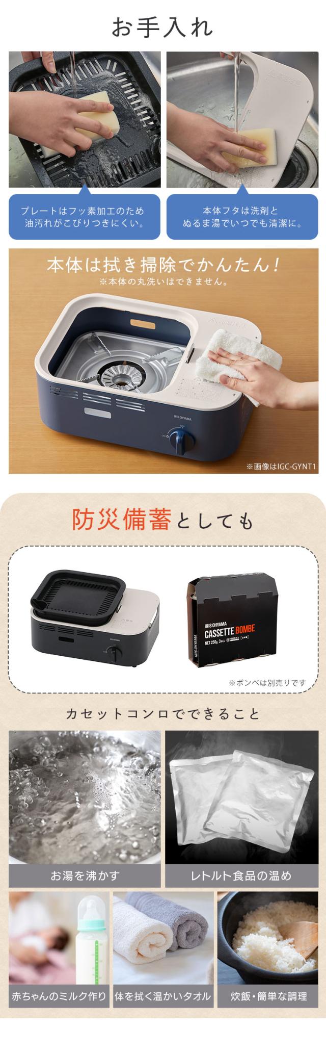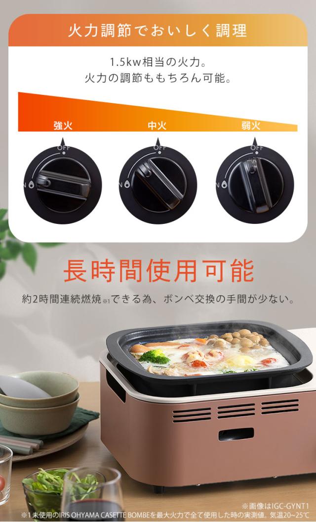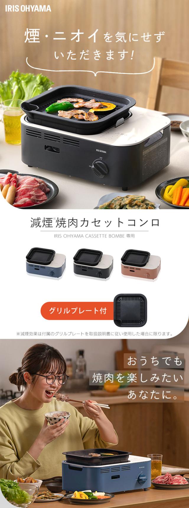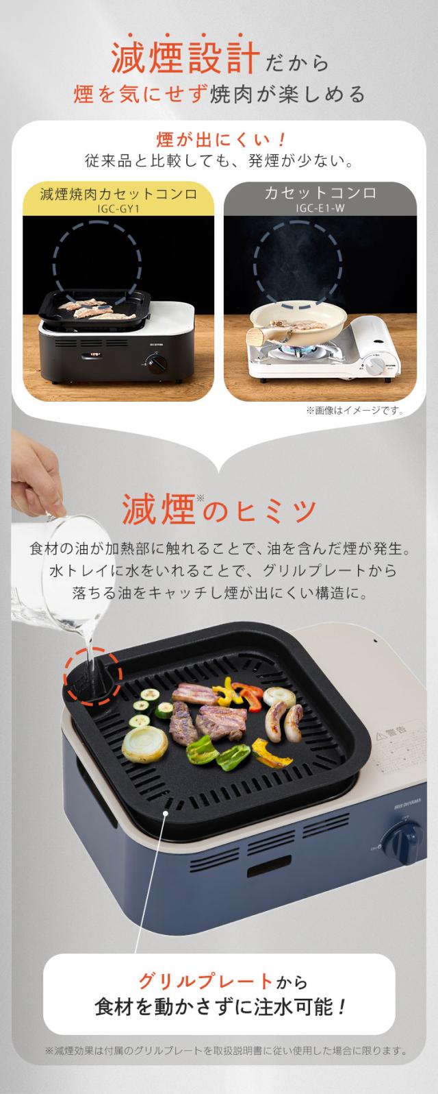 カセットコンロ 減煙 焼肉 減煙焼肉カセットコンロ IGC-GY1 全3色 プレート グリル 卓上 コンロ カセットボンベ カセットガス 煙が少ない 防災 備蓄 停電 コードレス アイリスオーヤマ 送料無料
