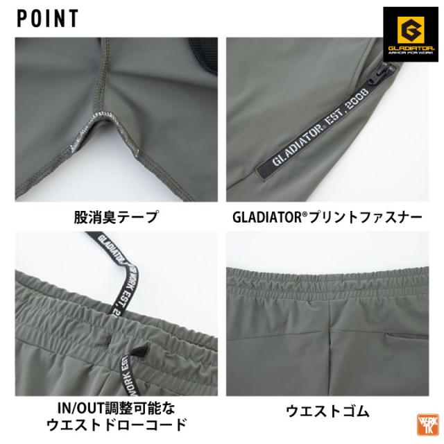 グラディエーター 接触冷感 ハーフパンツ ストレッチ UVカット 作業ズボン ショートパンツ 膝上 ウエストゴム 涼しい 春夏 作業着 作業服 スポーツ ゴルフ トレーニング アウトドア メンズ レディース おしゃれ かっこいい カジュアル 大きいサイズ コーコス cc-g7524