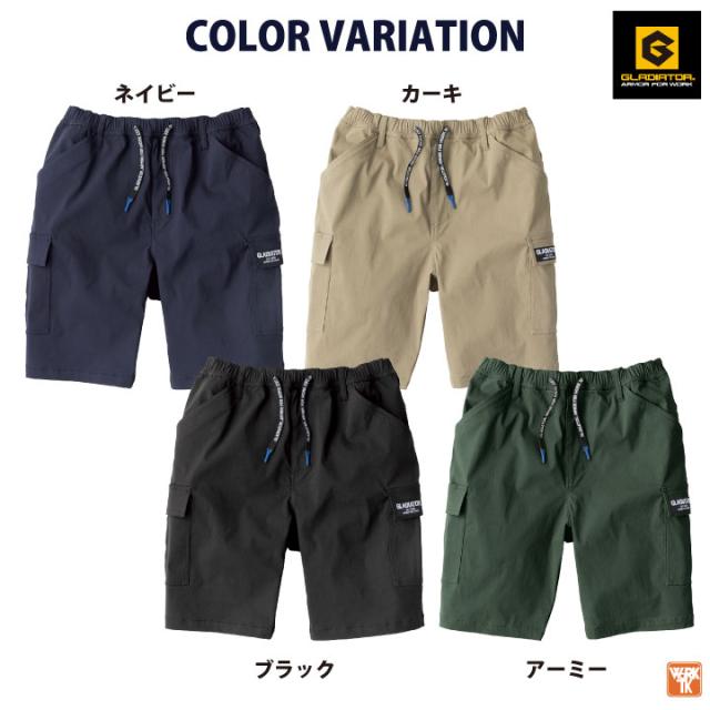 グラディエーター 接触冷感 ストレッチ ハーフパンツ 作業ズボン ショートパンツ 膝上 ウエストゴム 涼しい 冷たい 軽い 春夏 作業着 作業服 スポーツ ゴルフ アウトドア メンズ レディース おしゃれ かっこいい カジュアル 大きいサイズ コーコス cc-g2016