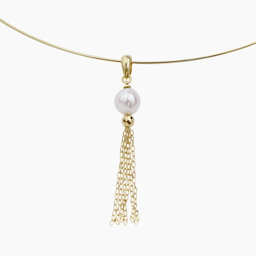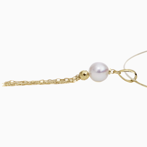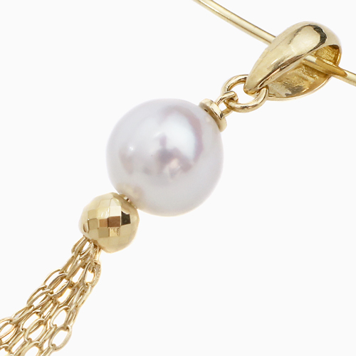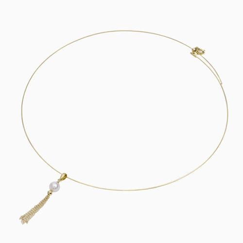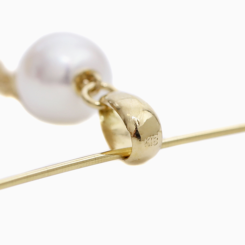 高級素材・18金を贅沢に使用した、シンプルで細く繊細なスライド式のパールのトップ付のオメガネックレス。