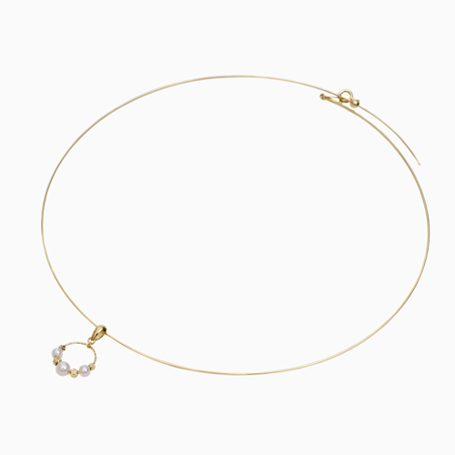 高級素材・18金を贅沢に使用した、シンプルで細く繊細なスライド式のパールのトップ付のオメガネックレス。