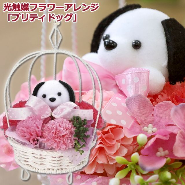 光触媒フラワーアレンジ「プリティドッグ」 (花ギフト 全国発送 フラワーギフト 犬 造花 空気浄化 抗菌 消臭)