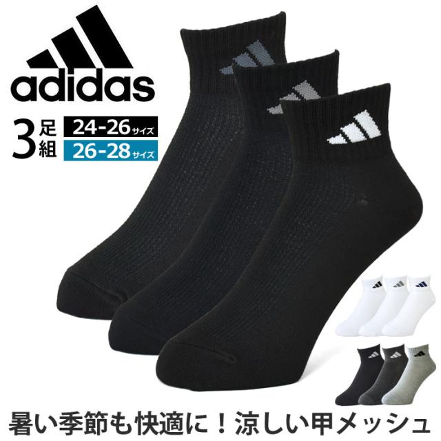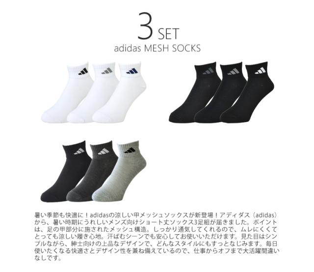 アディダス adidas ソックス メンズ 3足組 涼しい 甲メッシュ 紳士 ショート丈 靴下 消臭【H3E】【送料無料】【メール便2】【メンズ】【mens】 春新作