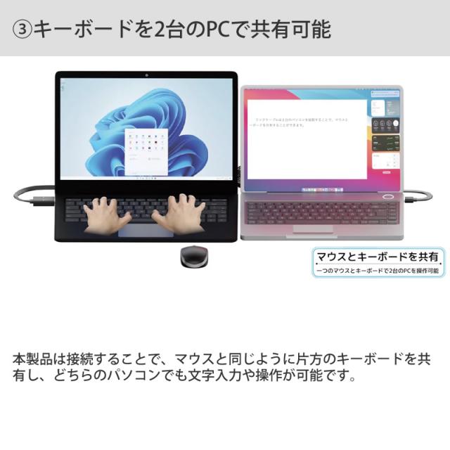 WindowsOS、MacOSそれぞれに対応し、異なる両方のOSを接続、操作する事も可能。