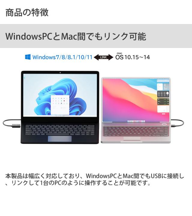 エアリア リンクイレブン LINK11 (メール便送料無料) リンクケーブル AREA ファイル移動 高速転送 マウス キーボード 共有 WindowsOS MacOS 対応 USB TypeC ドラック&ドロップ
