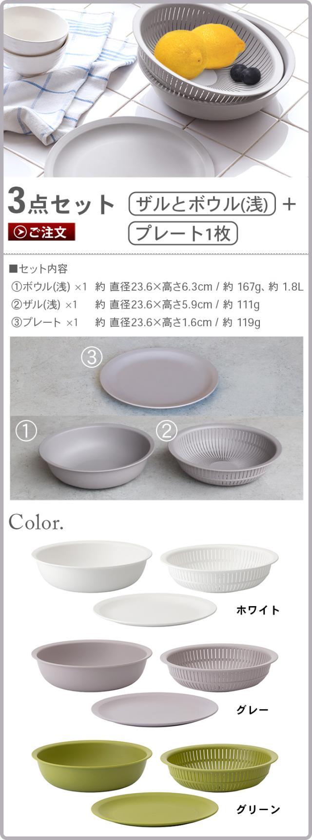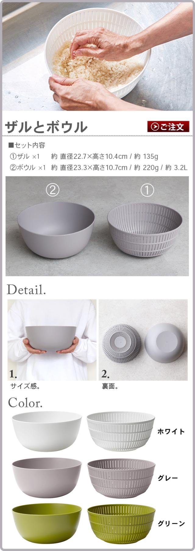 | ザル:ポリプロピレン・熱可塑性エラストマー ボウル:ポリプロピレン |