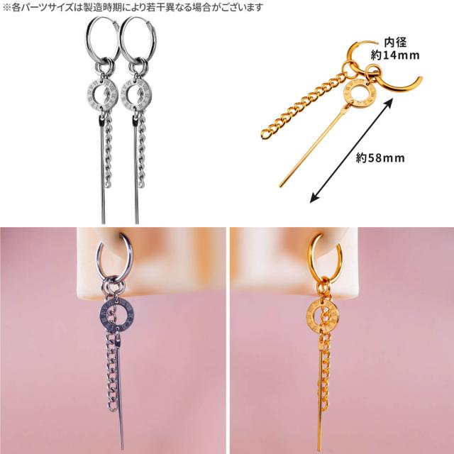 2個セット ローマ数字 リング チェーン ワンタッチ フープ ピアス 18G サージカルステンレス ヘリックス 軟骨ピアス ボディピアス
