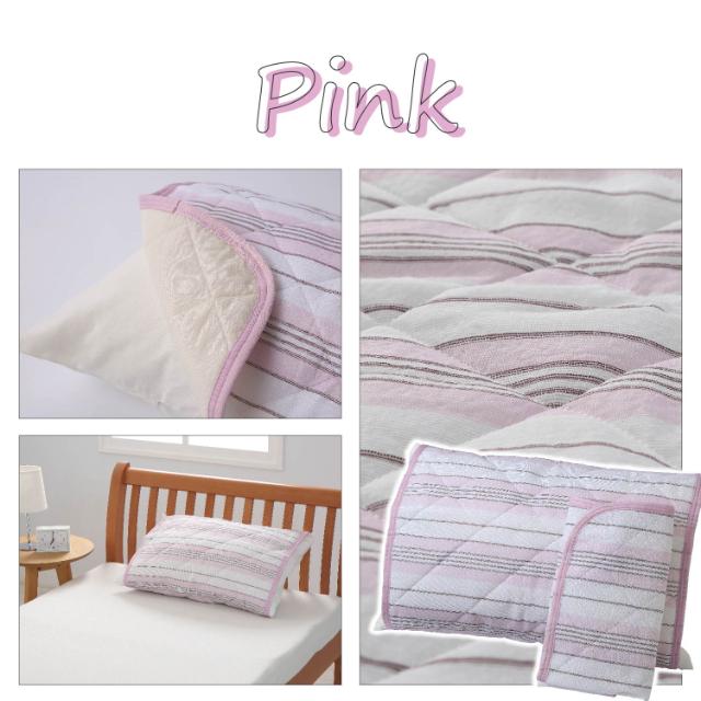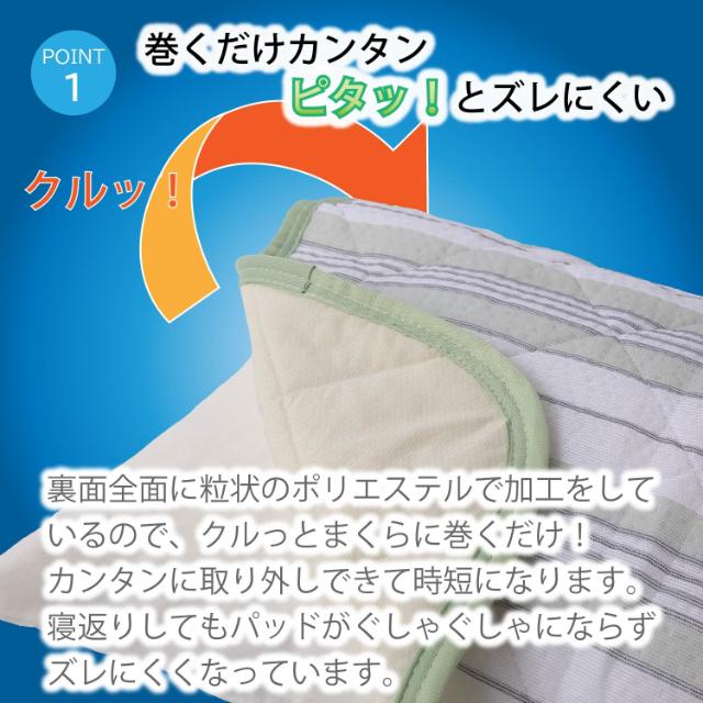 置くだけ!簡単!楽々!枕パッド●さらっとした肌ざわりの綿しじら織りを使用。
