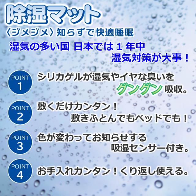 除湿マットを敷きふとんの下(畳やフローリングに直接)やベッドパッドの下(マットレスとベッドパッドの間)に敷くだけで、おふとんの中の湿度を調節し、快適にお休み頂けます。