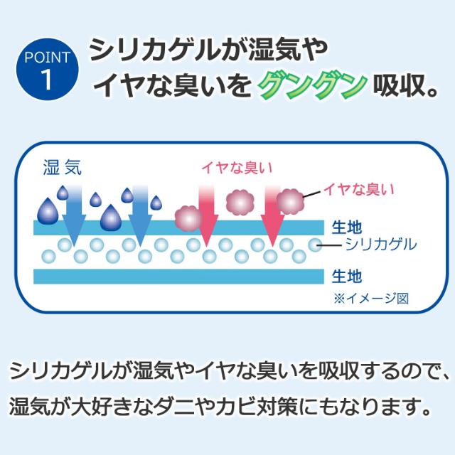 除湿(乾燥)作用により、ふとんやベッドの中にこもるジメジメ、ベタ付きを取り除き、寝具を清潔に保つことができます。