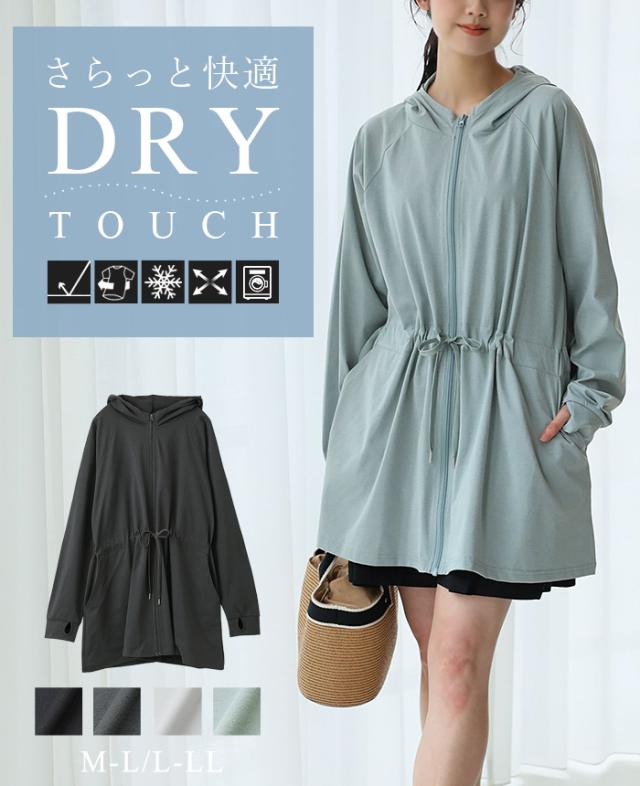 DRYタッチロングパーカー ドライ UV パーカー 接触冷感 指穴 速乾 トップス レディース 日焼け止め ゆったり【メール便不可】