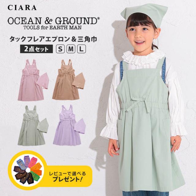 オーシャンアンドグラウンド OCEAN&GROUND エプロン キッズ 三角巾 2点セット 綿100% 子供 女の子 おしゃれ かわいい コットン 幼稚園 保育園 小学校 小学生 NEBULA 1328003 100 110 120 130 140 150 160 子ども 送料無料 新作 ギフト 冬