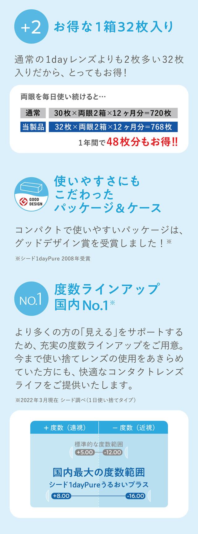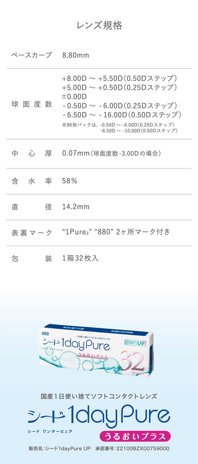 【遠視】(1箱32枚) SEED シード ワンデー ピュアうるおいプラス コンタクトレンズ[seed-1daypure][SE]*