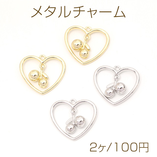 メタルチャーム メタルハートチャーム ハート型 さくらんぼ チェリー 21×23mm(2ヶ)