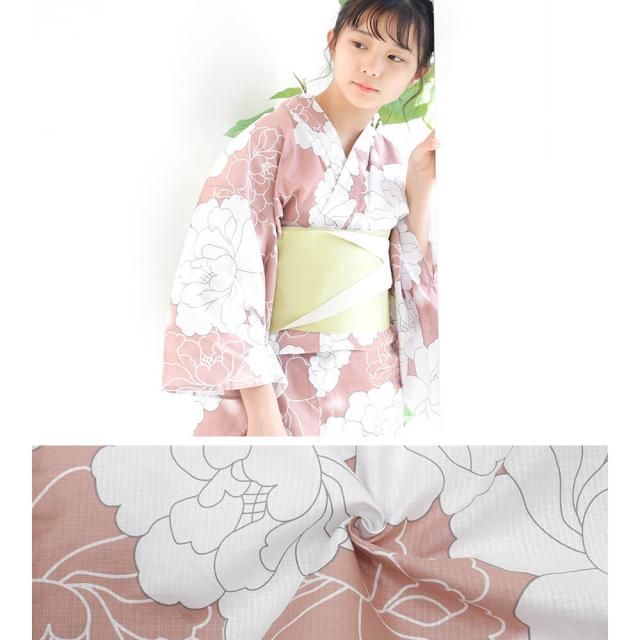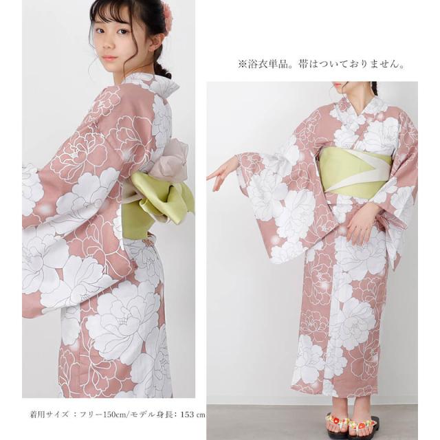 子供浴衣 単品 ジュニア ジュニア浴衣 子供 浴衣 女の子浴衣 140 150 160 レトロ お洒落 花柄 牡丹 ピンク