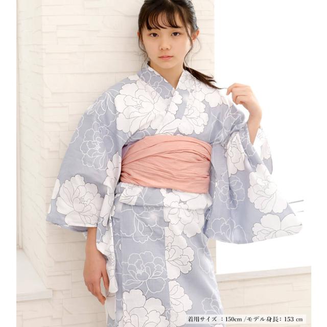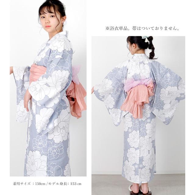 子供浴衣 単品 ジュニア ジュニア浴衣 子供 浴衣 女の子浴衣 140 150 160 レトロ お洒落 花柄 牡丹 ブルーグレー