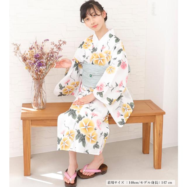 子供浴衣 単品 ジュニア ジュニア浴衣 子供 浴衣 女の子浴衣 140 150 160 レトロ お洒落 朝顔 黄色 ピンク