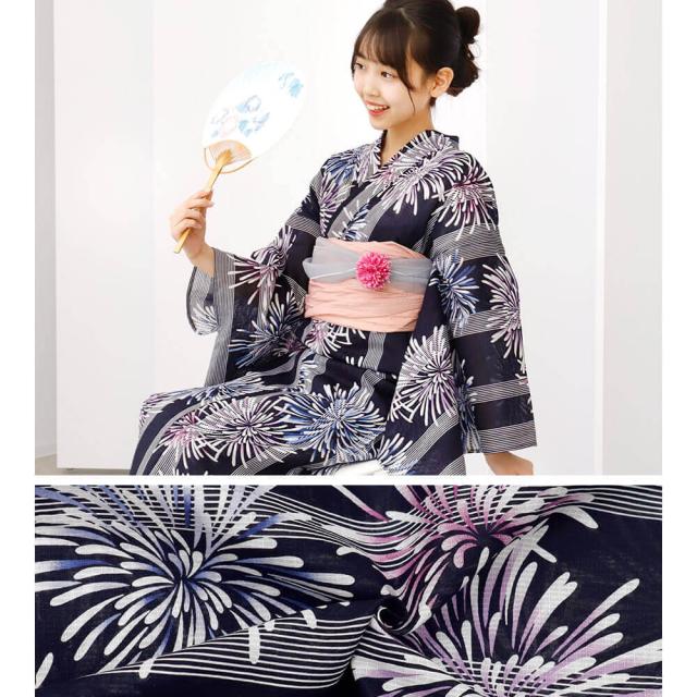 子供浴衣 単品 ジュニア ジュニア浴衣 子供 浴衣 女の子浴衣 140 150 160 レトロ お洒落 花火 紺 青 紫 可愛い