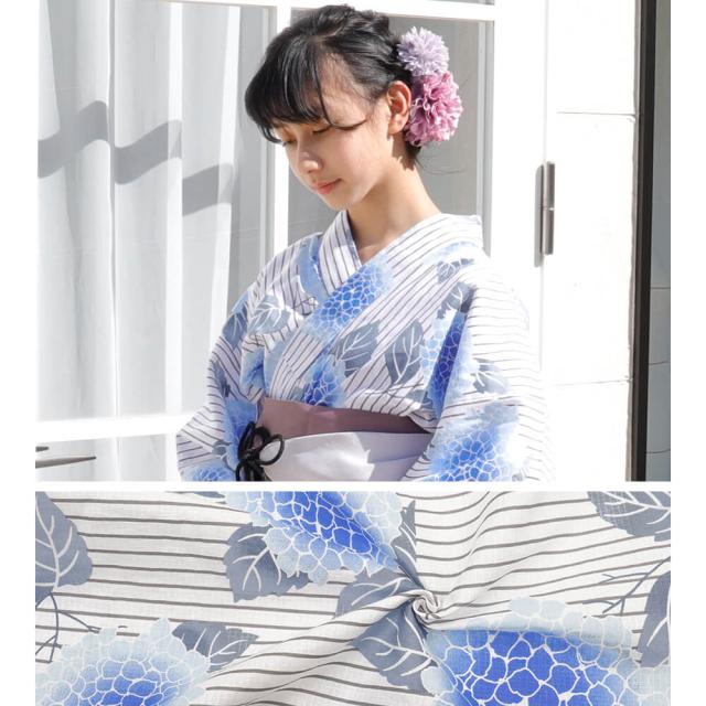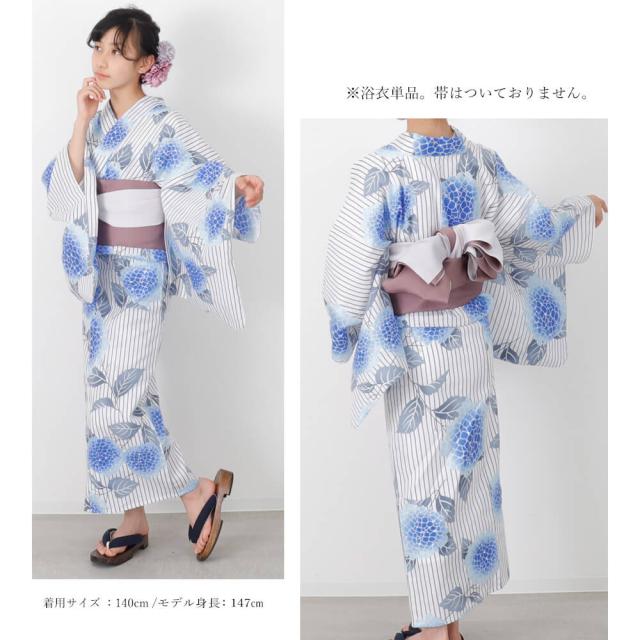 子供浴衣 単品 ジュニア ジュニア浴衣 子供 浴衣 女の子浴衣 140 150 160 レトロ お洒落 あじさい ブルー 水色