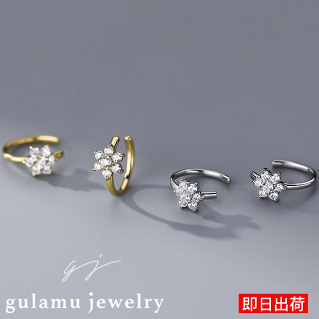 イヤーカフ レディース 金属アレルギー対応 イヤリング 花 フラワー ノンホールピアス 両耳用 シルバー925 プラチナ ゴールド クリスマスプレゼント 女性 人気 クリスマス_wp