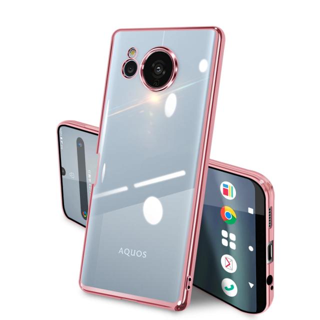 AQUOS sense7 ケース クリア 全面保護 SH-53C SHG10 SH-M24 カバー シャープ センス7 ソフト 透明 スマホケース TPU 薄型 耐衝撃 軽量 メッキ加工 携帯カバー ストラップホール付き 落下防止 擦り傷防止(ローズゴールド)
