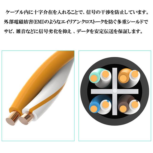 1m LAN 延長ケーブル RJ45 CAT6 LAN延長コネクタ 高速イーサネット Gigabit 有線 LAN 延長コード 爪折れ防止 速度低下防止 パッチコード FTPシールド付き LAN中継コネクタ対応 1m