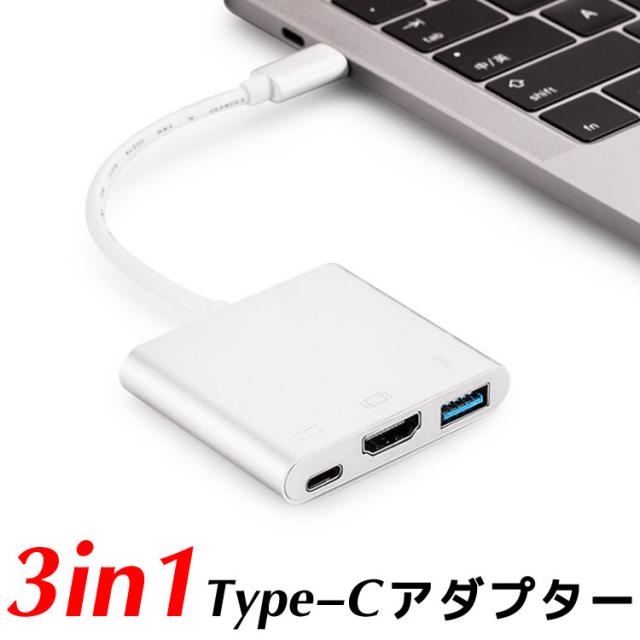 3in1 Type-Cアダプター type c ハブ 変換 変換アダプター macbook mac book マルチポート アダプター Nintendo Switch HDMI USB 充電 充電対応 パソコン 3in1(Type-C/HDMI/USB3.0) Type-C USBハブ