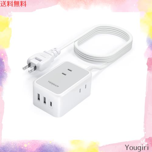 延長コード 5m TESSAN 電源タップ usb付き usb-c コンセントタップ 3個ACコンセント USB-C 1ポート USB-A 2ポート たこあしコンセント 分